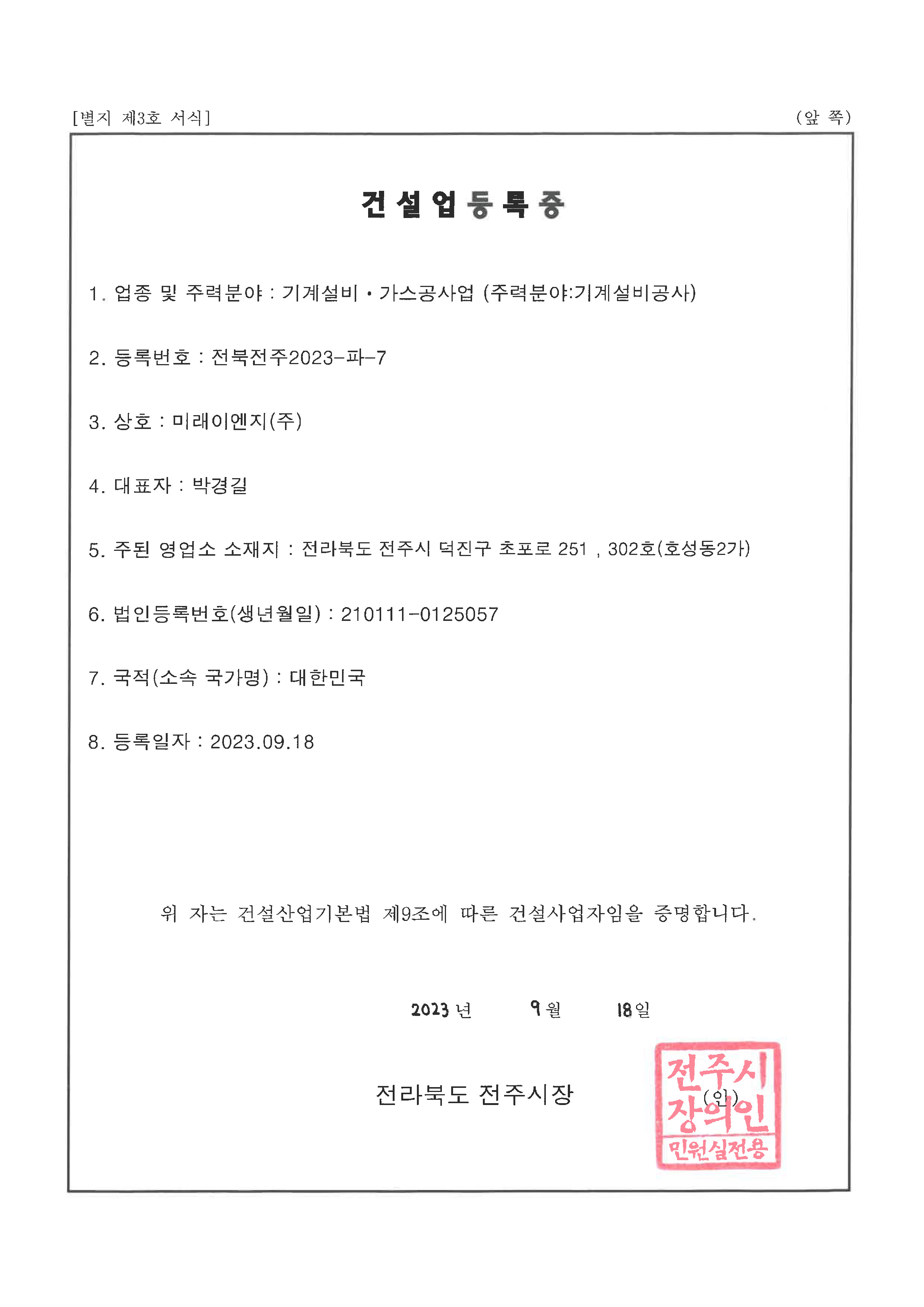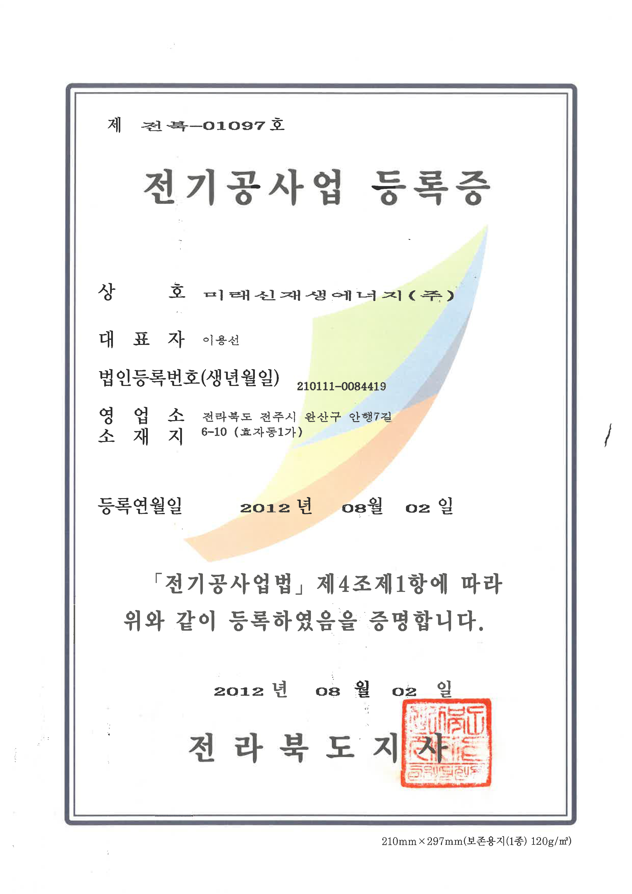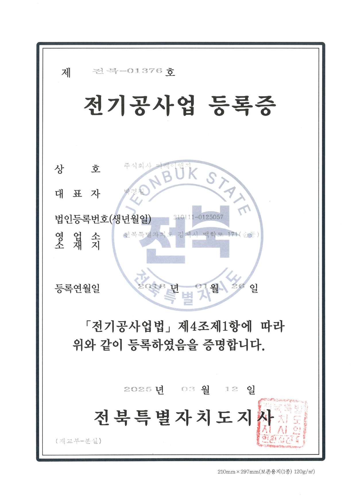 Àü±â°ø»ç¾÷ µî·ÏÁõ